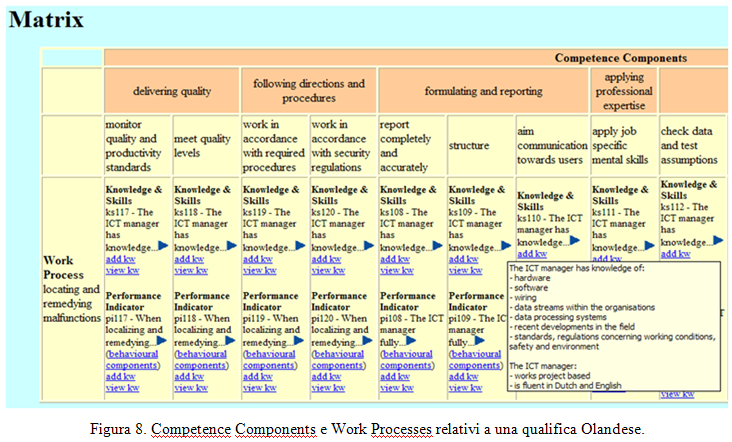 Nello specifico, relativamente alle funzionalità per gli studenti/lavoratori, sono state sviluppate alcune pagine che facilitano la navigazione: seguendo i link è infatti possibile navigare un profilo, analizzando per esempio contenuti, descrittori ed indicatori (Figura 7), al fine di identificare le informazioni rilevanti relative a una qualifica di un altro Stato, per esempio rilevando confronti tra Italia ed Olanda (Figura 8).